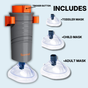 Your purchase includes a suction chamber, child and adult-sized masks, a one-way valve, an instructional card for quick responses, a storage case, and access to training videos to ensure you feel confident and prepared.